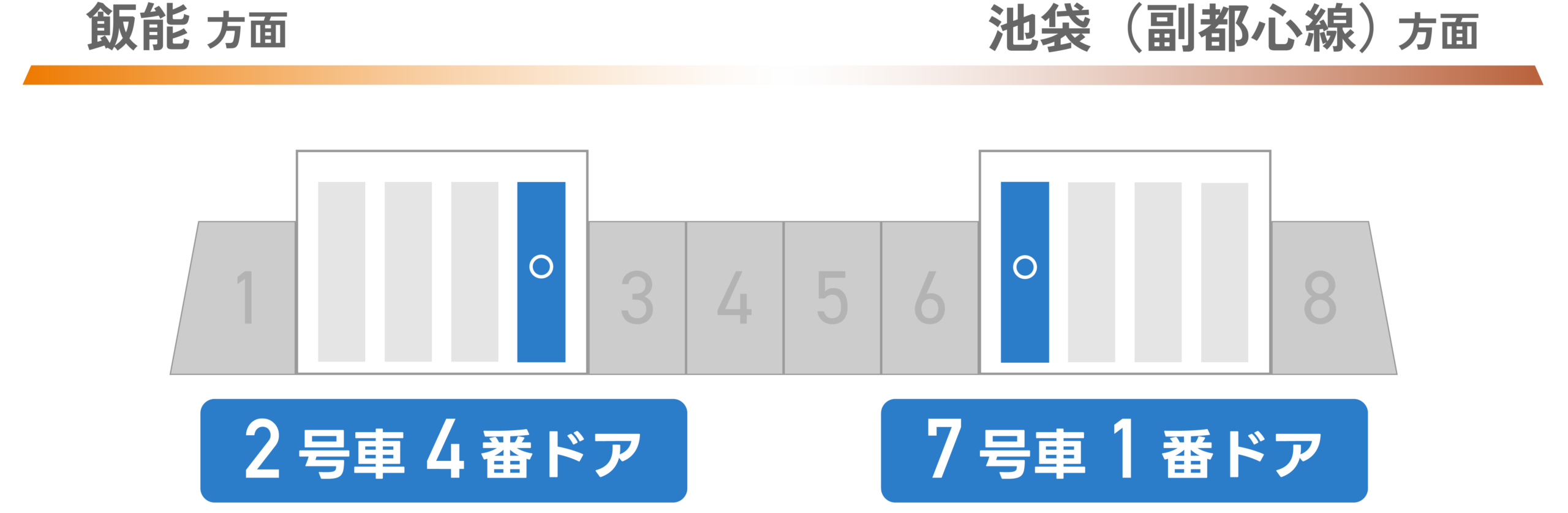 | 8号車 | 1番ドア(飯能側) 3番ドア(中間部) 4番ドア(池袋側) | 36% 9% 28% |